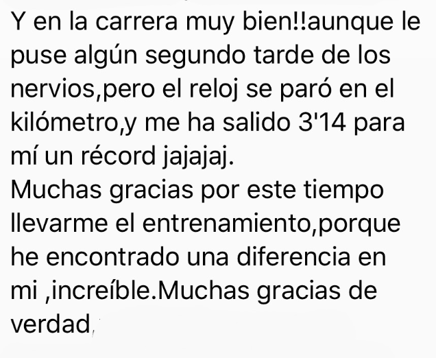 Conozco la teoría y la práctica. La pista y el asfalto. El alto rendimiento y el entrenamiento con objetivos personales. Y todo eso, inevitablemente, se refleja en mi forma de acompañar a otros.